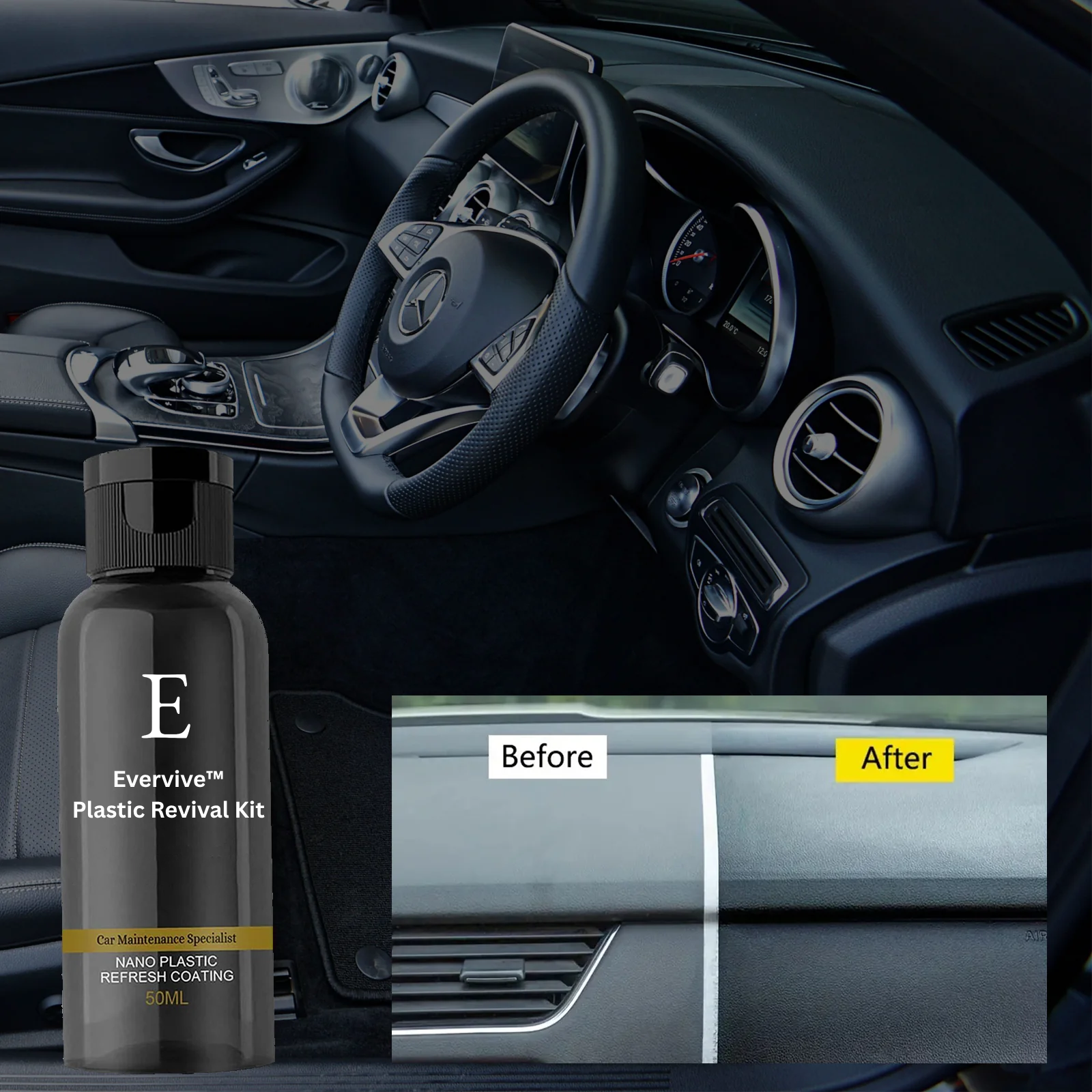 Your car deserves to look its best. With our all-in-one Evervive™ Plastic Part Revival Kit, restoring that deep, showroom shine is simple. No expensive washes. No time-consuming detailing. Just powerful, easy results- right from your driveway.